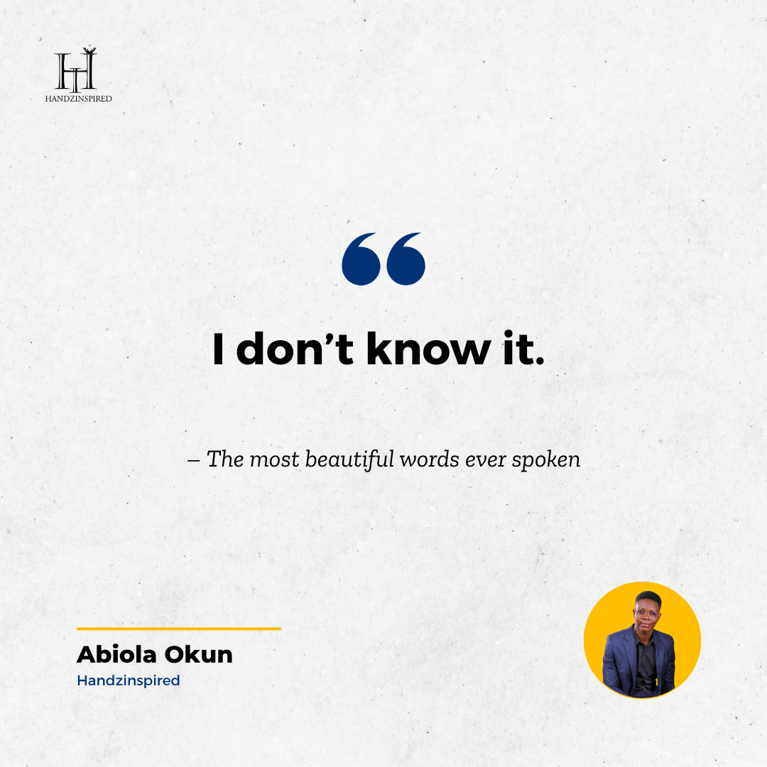 Instead of saying "I don't know it," "I don't know how to use it," "I cannot operate it," "I have never seen it before in my life," “Yes I come from a bush, and in my bush, we don't use something like that,” I go ahead and fumble, when I could just listen to others who have done it, because somehow, I long believed that it's a shameful thing not to know something everyone knows, or something people expect me to know — being the well-exposed, digital-savvy, knowledge-monger that I am. Until one day.